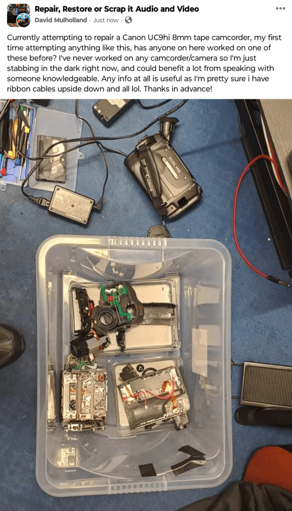 Attempting to repair a 8mm tape camcorder. Don’t think I can manage it to be honest!